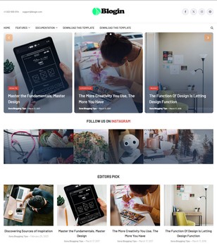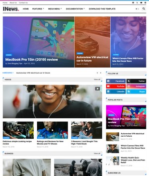 Features: Grid layout, featured slider, SEO-ready, fast loading.